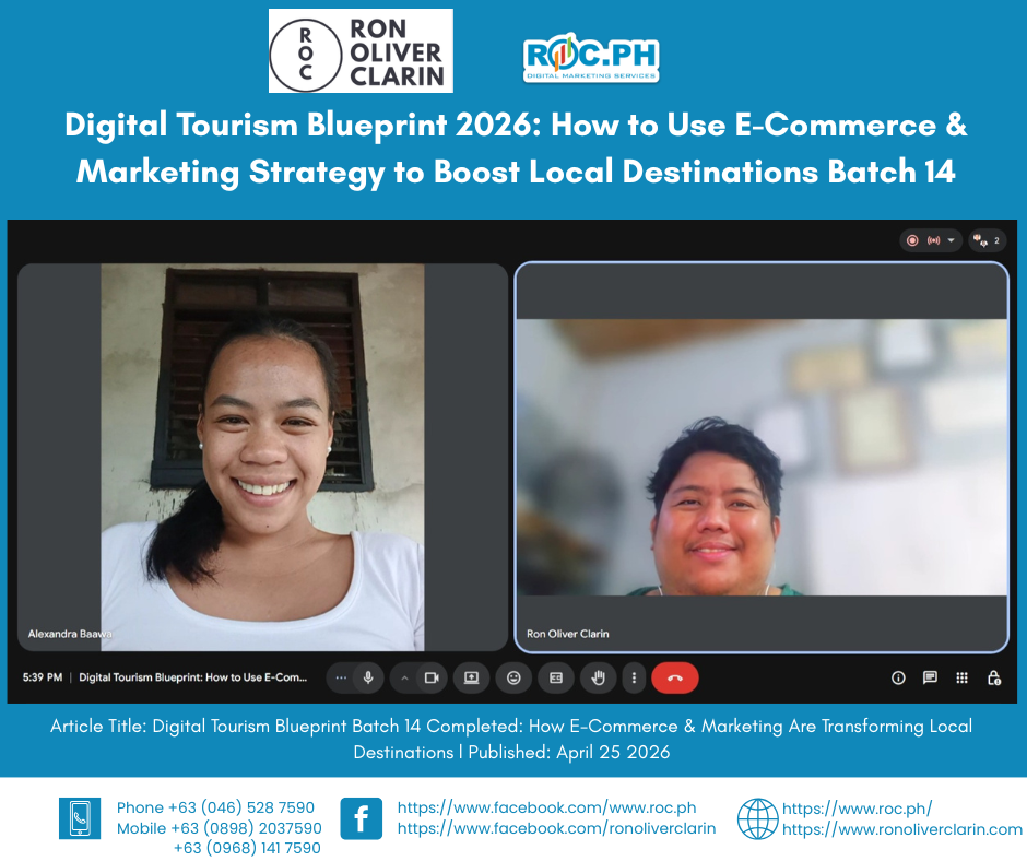 Digital Tourism Blueprint Batch 14 Successfully Completed The Digital Tourism Blueprint: How to Use E-Commerce & Marketing Strategy to Boost Local Destinations (Batch 14) was successfully conducted on April 25, 2026 at 2:00 PM via Google Meet. This session continues ROC.PH’s mission of helping tourism stakeholders, MSMEs, and LGUs transform local destinations into digitally competitive […]